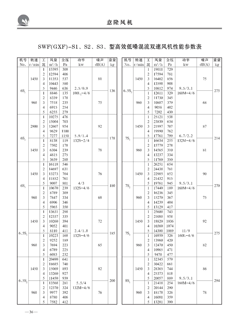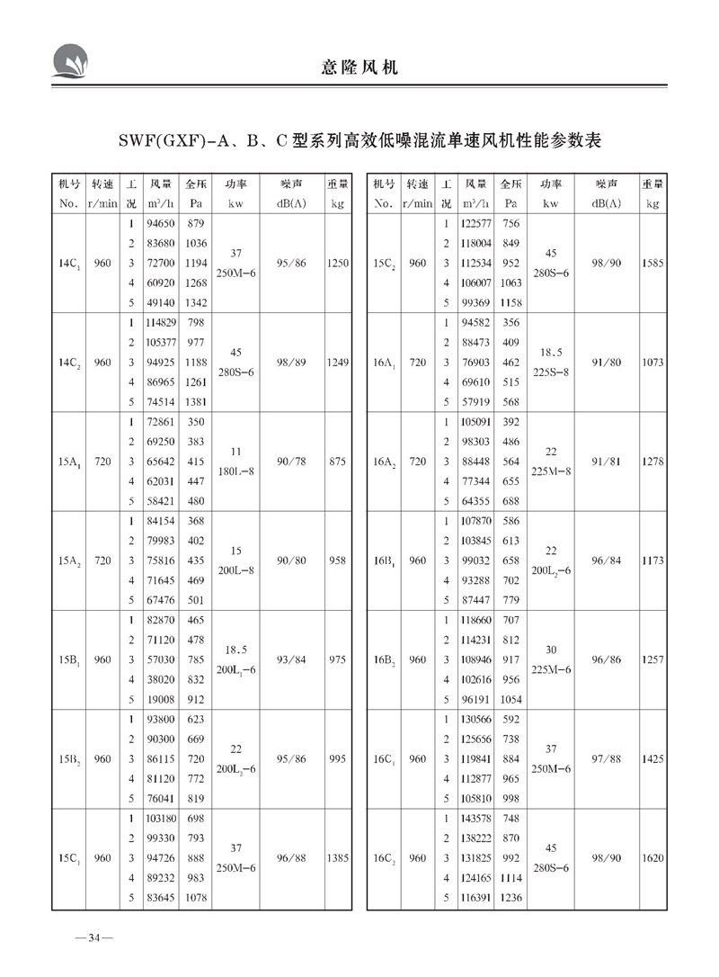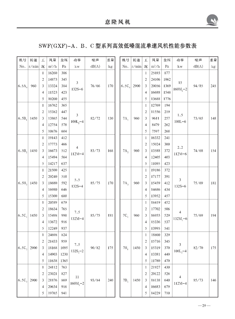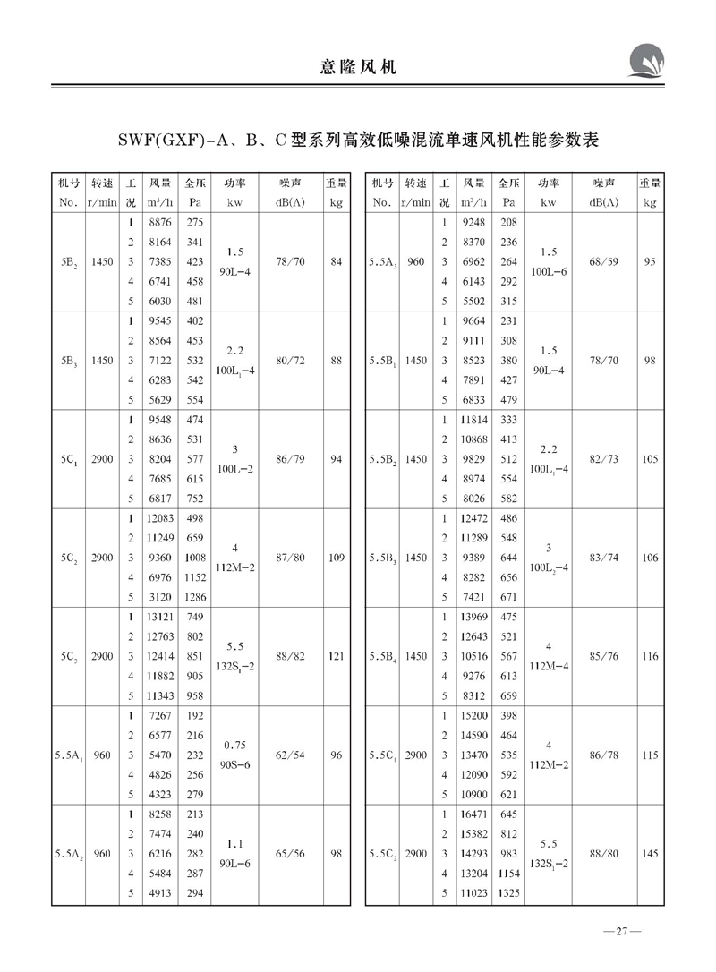SWF(GXF)型系列低噪声混流(斜流)风机样本